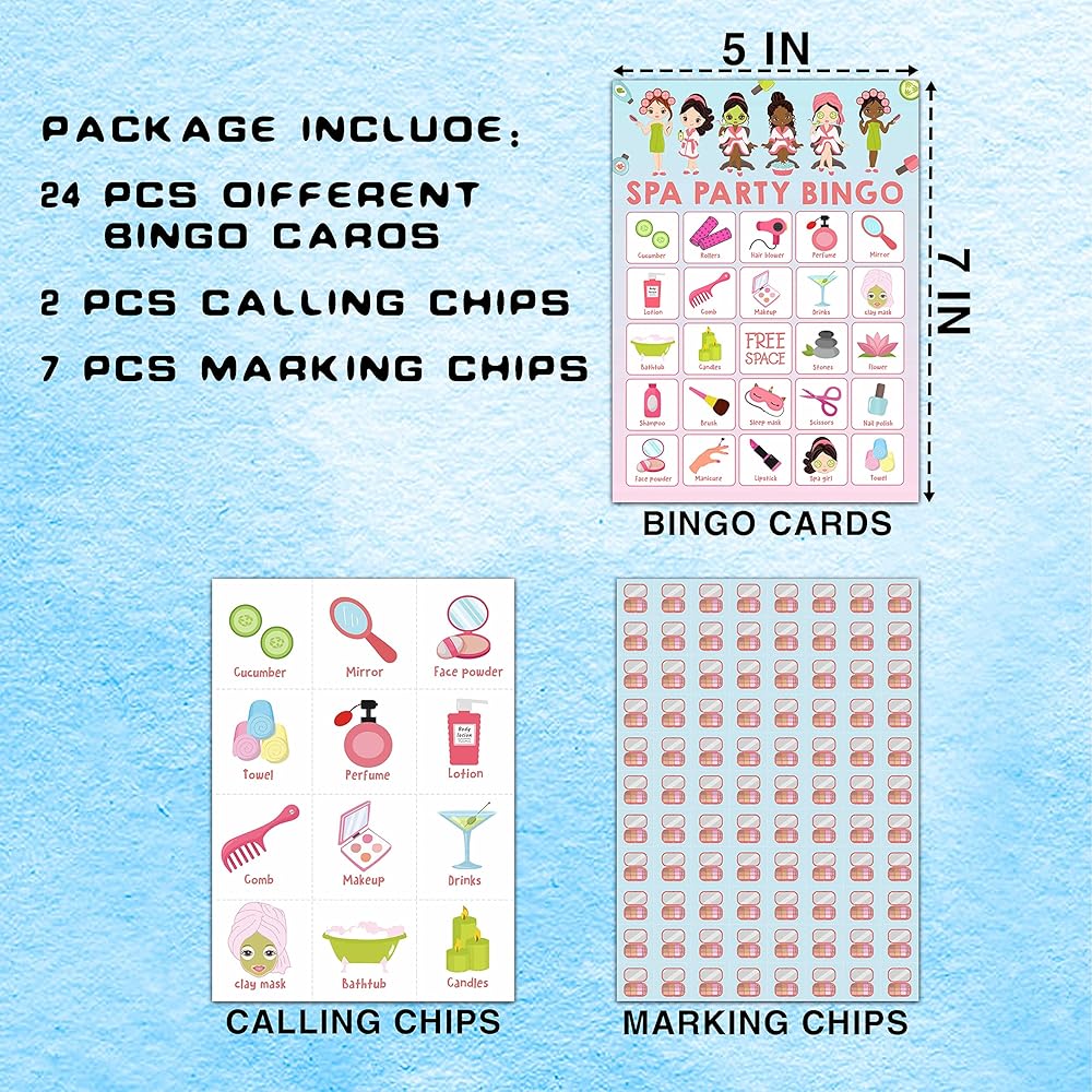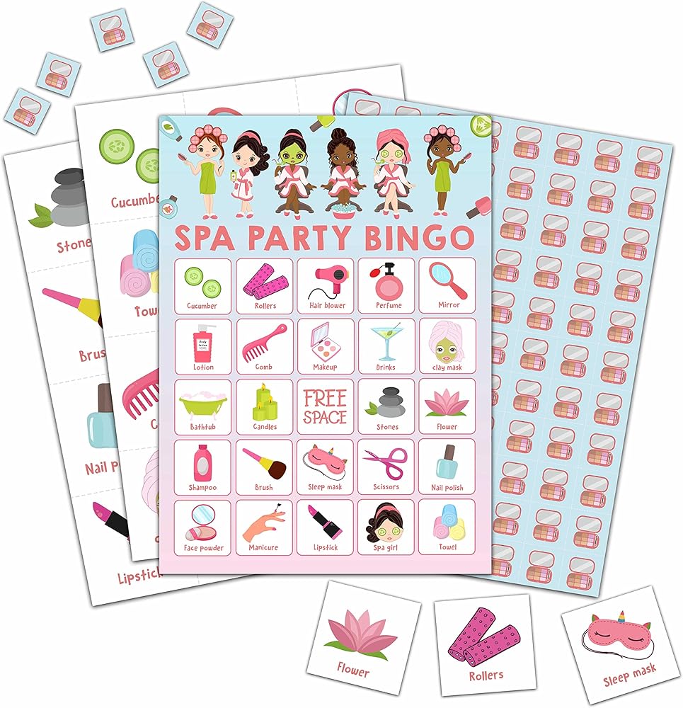 UTESG Spa Party Bingo Cards, Beauty Themed Birthday Party Bingo Games Set, Sleepover Party Favors Supplies Decorations, Kids School Classroom Home Activities - A01