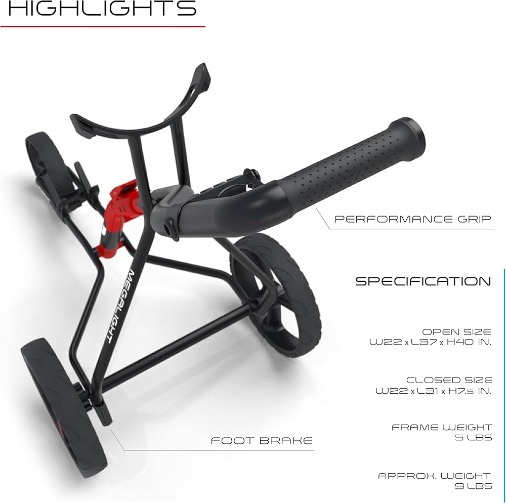 Lightest Golf Cart in its Class - This cart (weighing under 9 lbs) is the perfect combination of advanced materials and weight-saving design, making it the lightest in its class. Its stylish and cutting-edge design is tailored to meet the needs of every golfer.