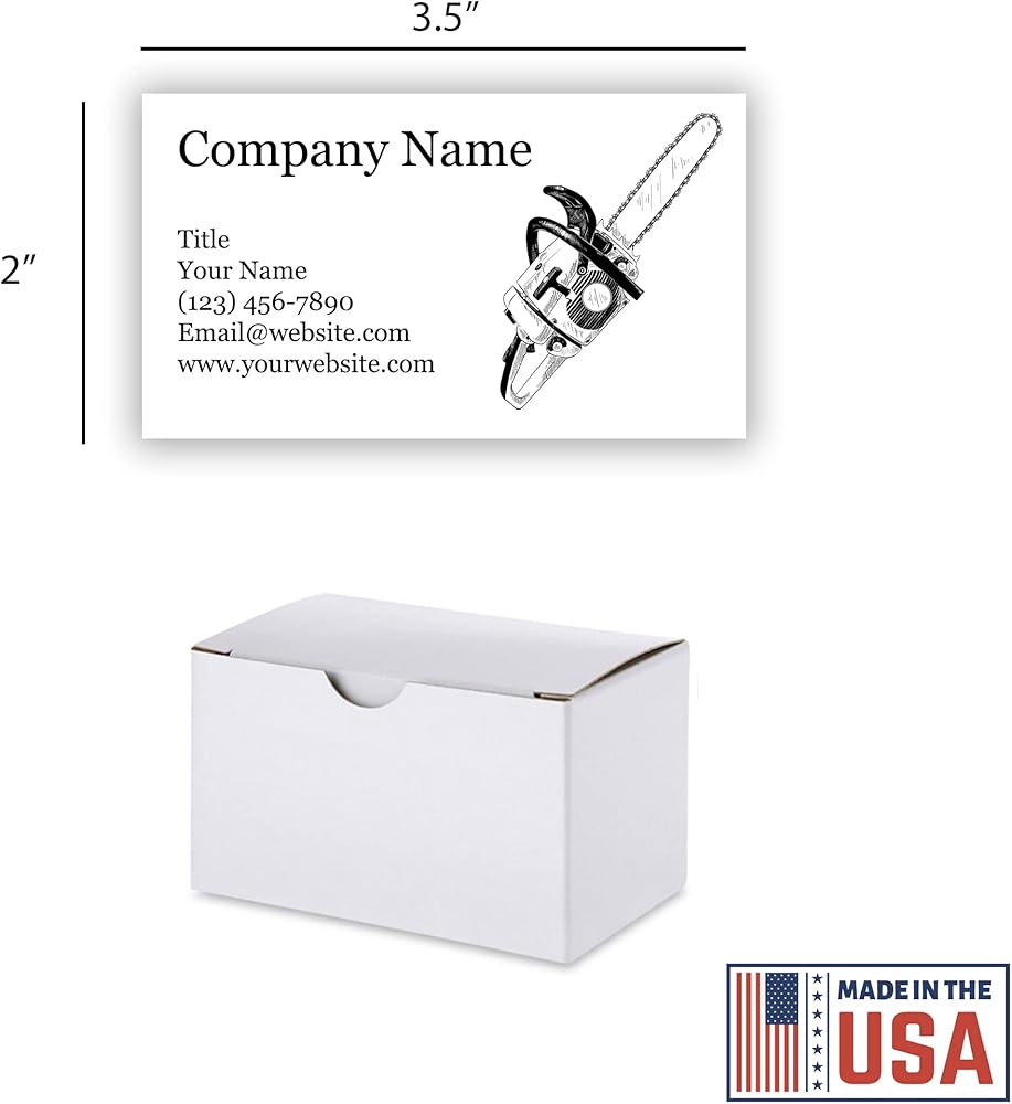 Personalized Business Cards - 3.5" x 2" - Thick Sturdy 300GSM Cards - Small Business Designs - 100% Made in the U.S.A. - 100 or 500 Cards (Chainsaw, 100)