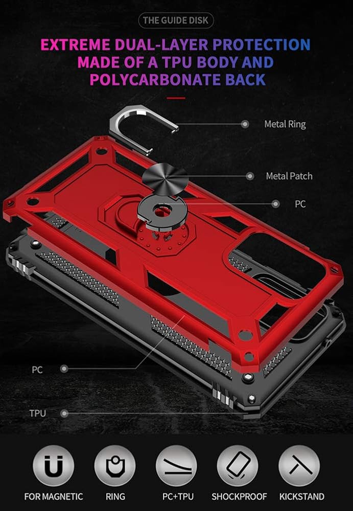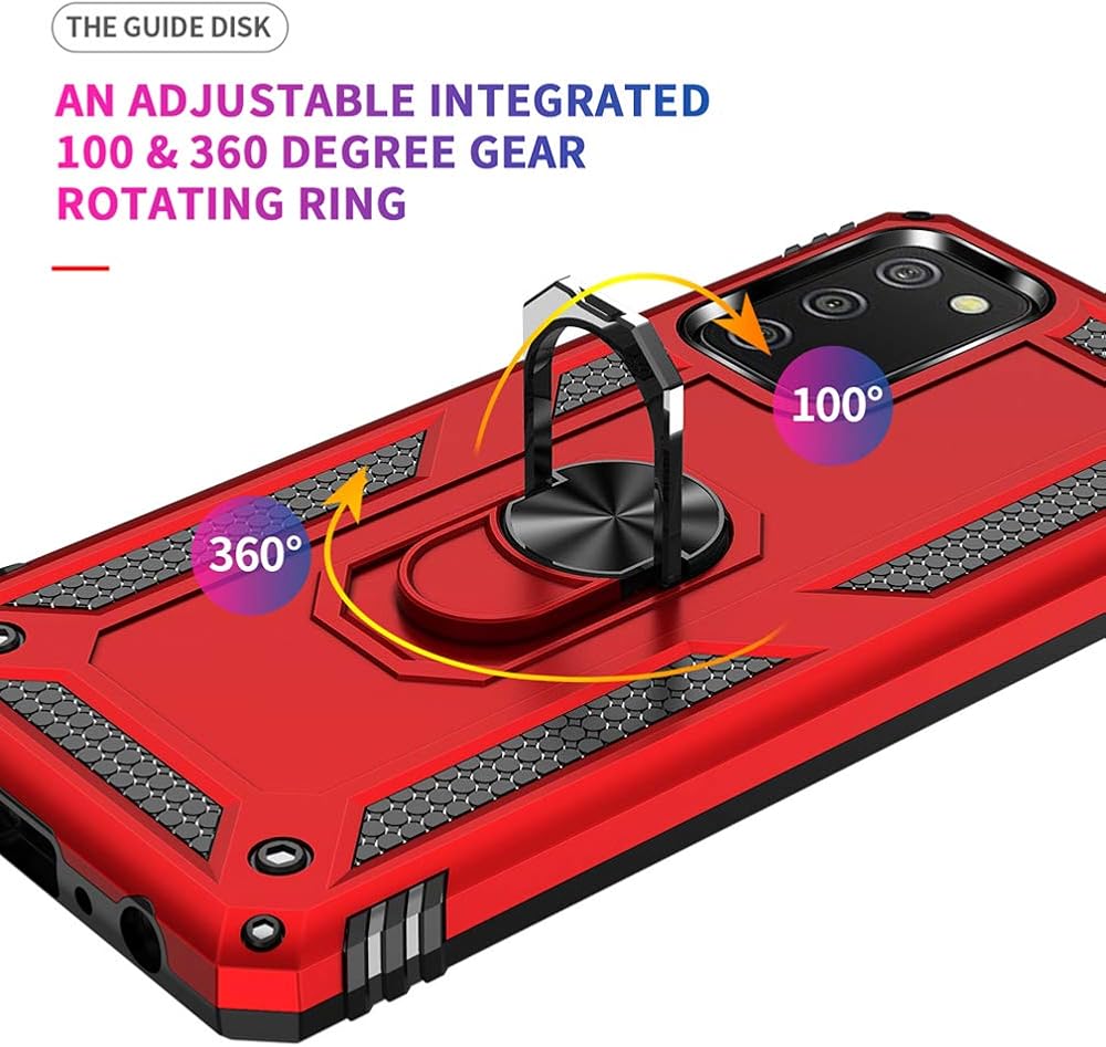 for Samsung A02S Case, with Screen Protector,[Military Grade] 16ft. Drop Tested Cover with Magnetic Kickstand Car Mount Protective Case for Samsung Galaxy A02S, Red