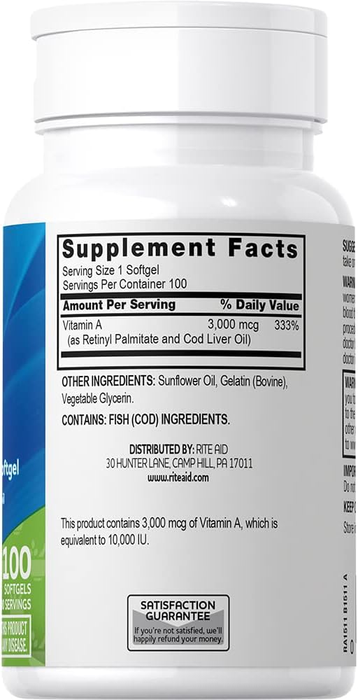 Rite Aid, Natural Vitamin A 10000IU, 100 Count