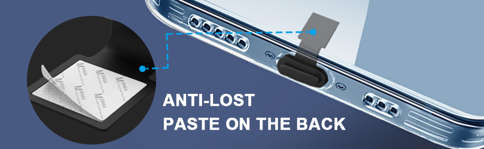 Anti-Lost Design: The USB C dust plug uses strong 3M tape and sticks to the back of the phone, so you don't have to worry about losing it when you take it out for charging.