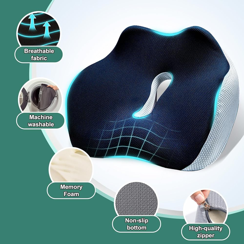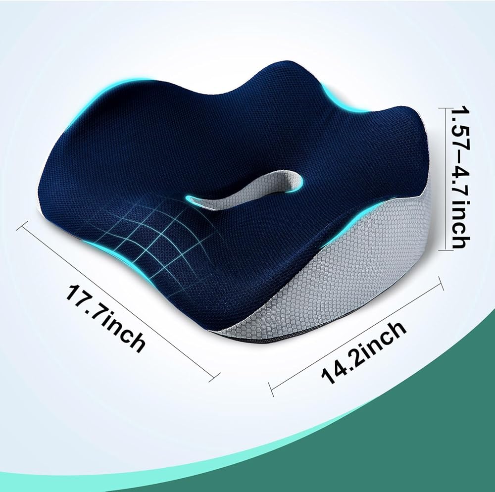 Large Memory Seat Cushion for Desk Chair, Non-Slip 3D Office Chair Cushions for Pressure Relief Sciatica & Tailbone Back Pain Relief,Ergonomic Pillow Memory Foam Coccyx Pad for Office Home Car (Blue)