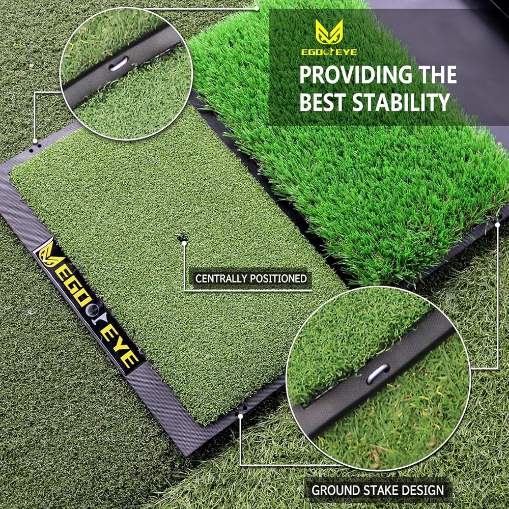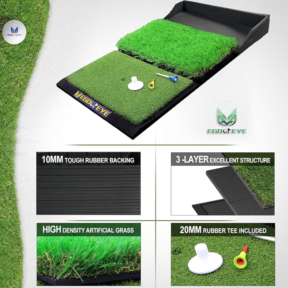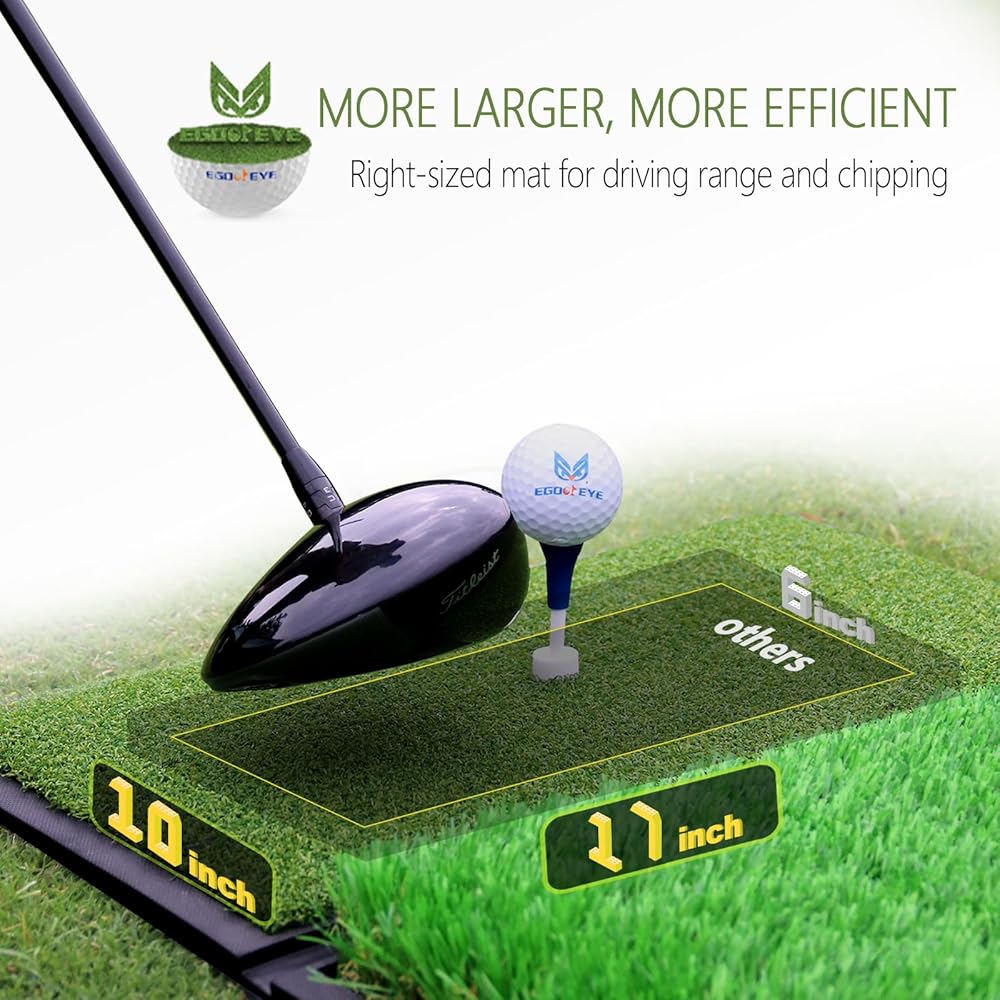 Standard golf mats range from 5"to 7" wide, while EGOOIEYE 17"x 30" golf mat is specifically designed for practicing a wide range of shots, including approach shots. Most importantly, this practice mat is plenty large for the hitting area. Which can protect your wrists and driver from damage on mishit shots.