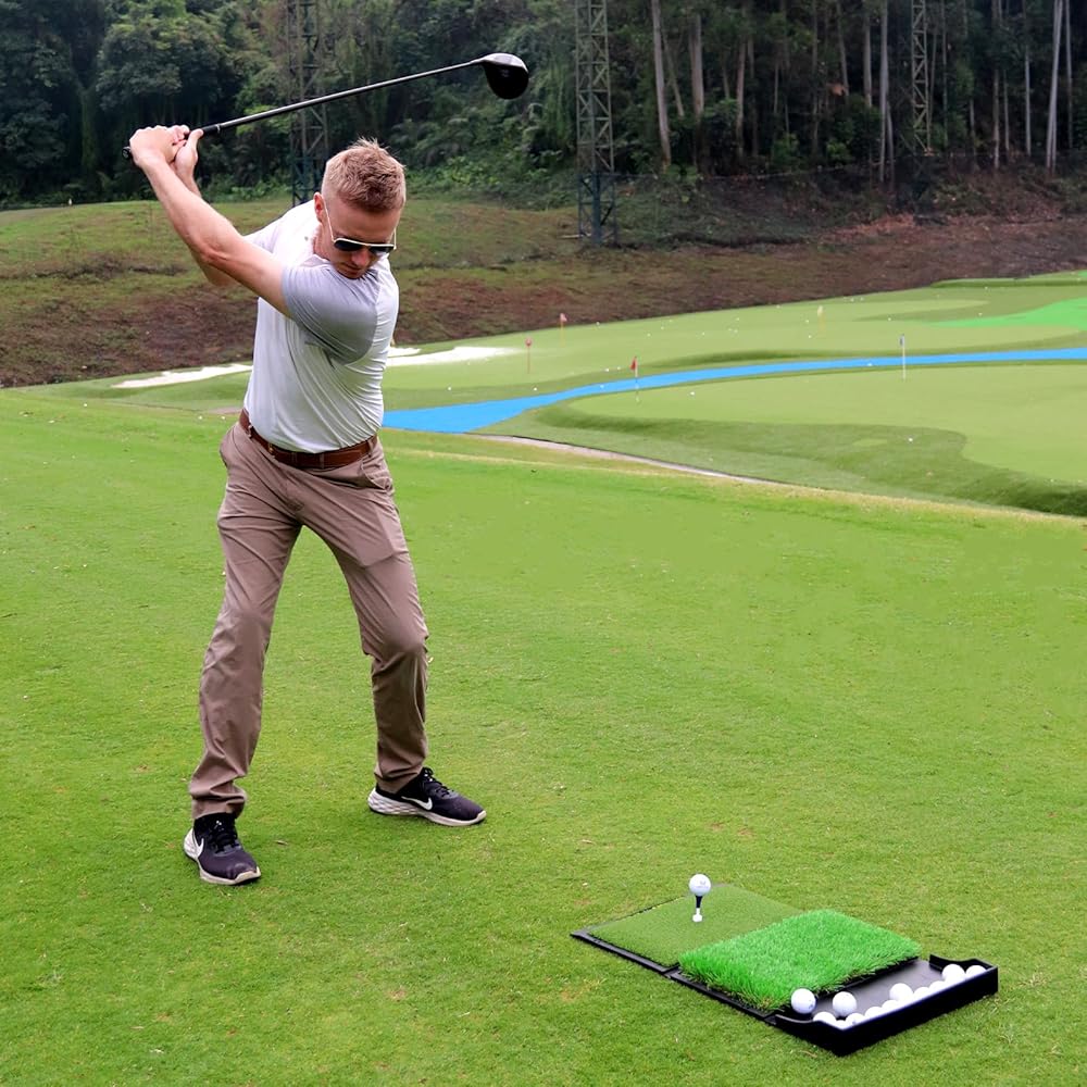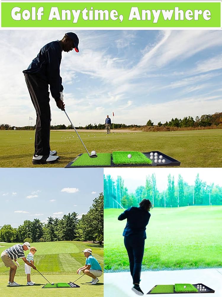 Golf Hitting Mat,Dual-Turf Mat with Ball Tray,Tri-Turf Mat,Golf Practice Mat Heavy Duty Rubber Base, Driving Chipping Practice,Golf Mats for Indoor or Outdoor Trining