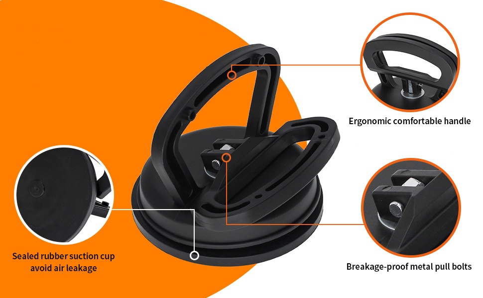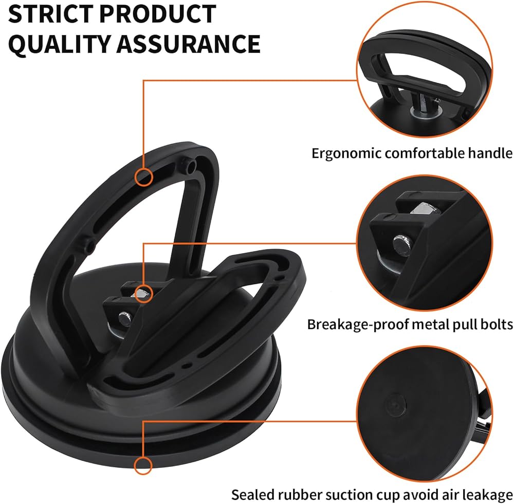 【Easy to Use】Car dent puller is easy to use , just put down the suction cup handle, and Put suction cup on the dent surface closely, then flip the suction cup handle up, make sure suction cup firmly stick on the dent surface; Pull the suction cup up use the handle on the suction cup, the dent surface will be pulled up with the suction cup.