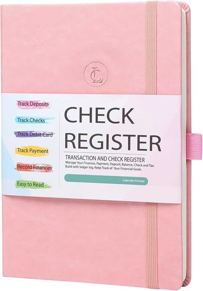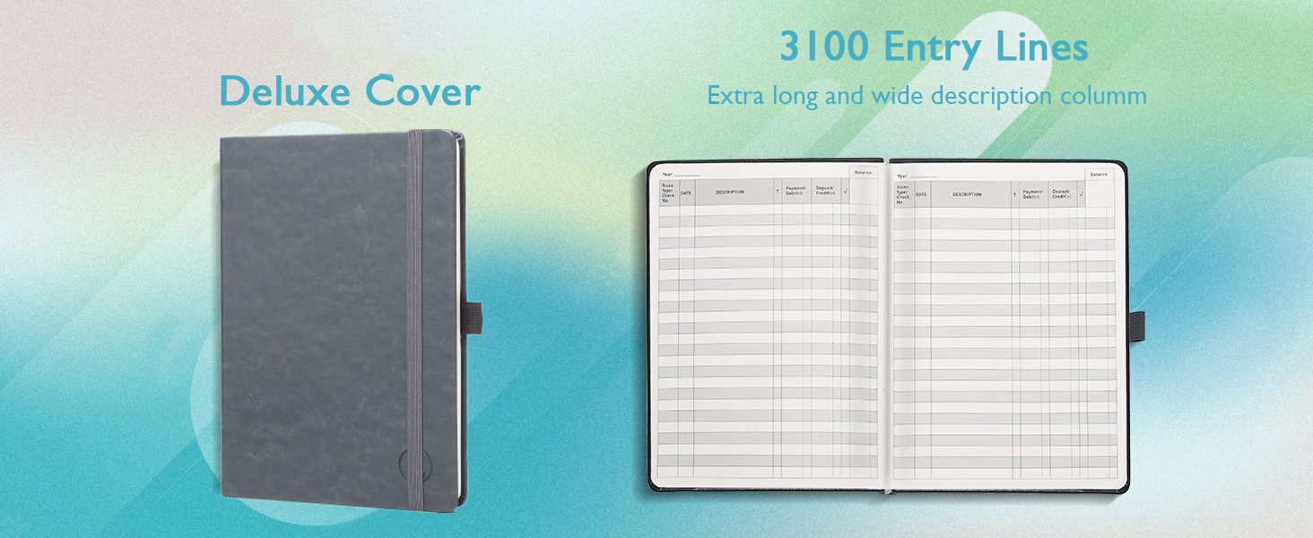 Large Lined Check Register Account Ledger, 7.5''x10'' Transaction Register Log Book for Small Business & Personal Checkbook, Track Income & Expense, Debit Card, PU Hardcover 2024