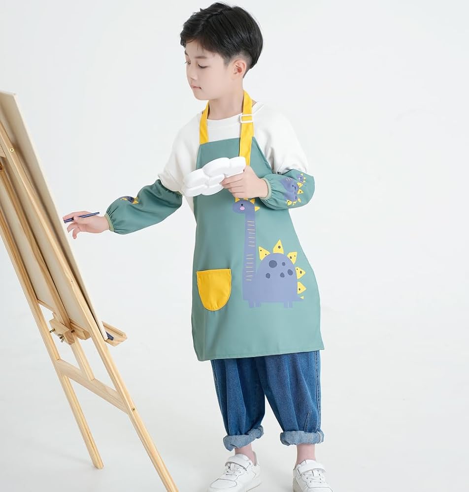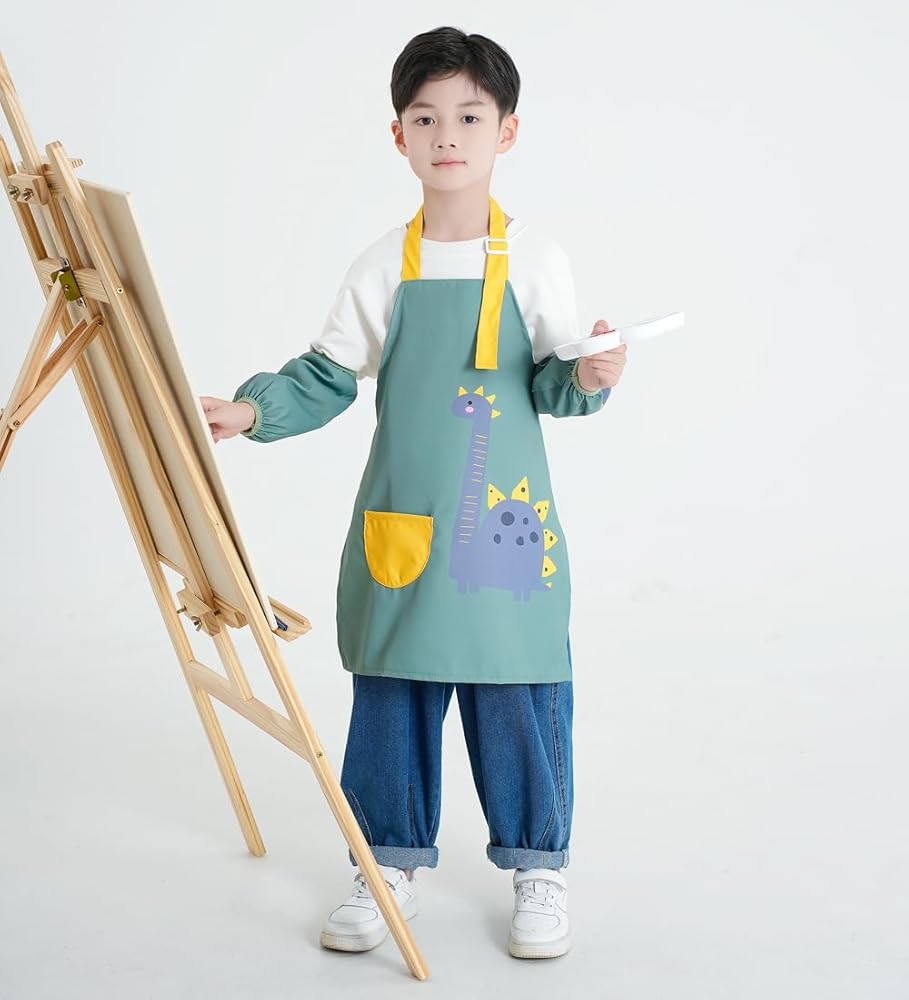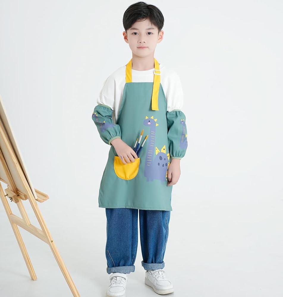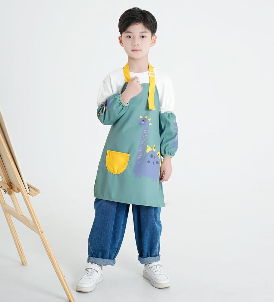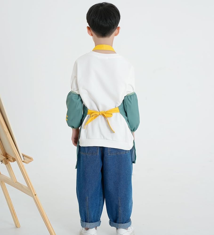 The waterproof apron works good with keeping kids clothes clean and the sleeve covers work good with keeping kids arms or long sleeves clean.This child aprons is great for art, teaching, cooking and baking etc, just work as kids smocks.