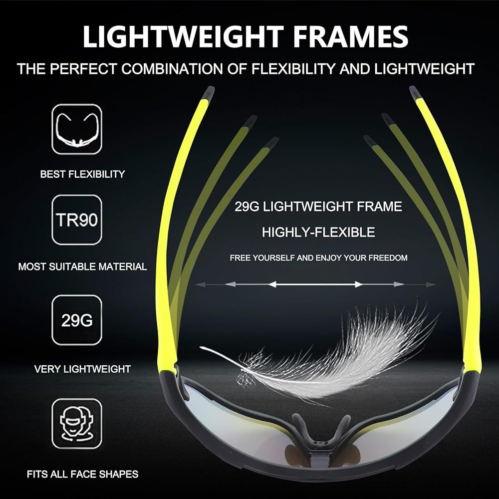 👓【TR LIGHTWEIGHT DESIGN】Our sports sunglasses made of TR frame and TAC polarized lens lightweight design that you can't feel you was wearing it.The frame can bend under pressure and contour your face comfortably.