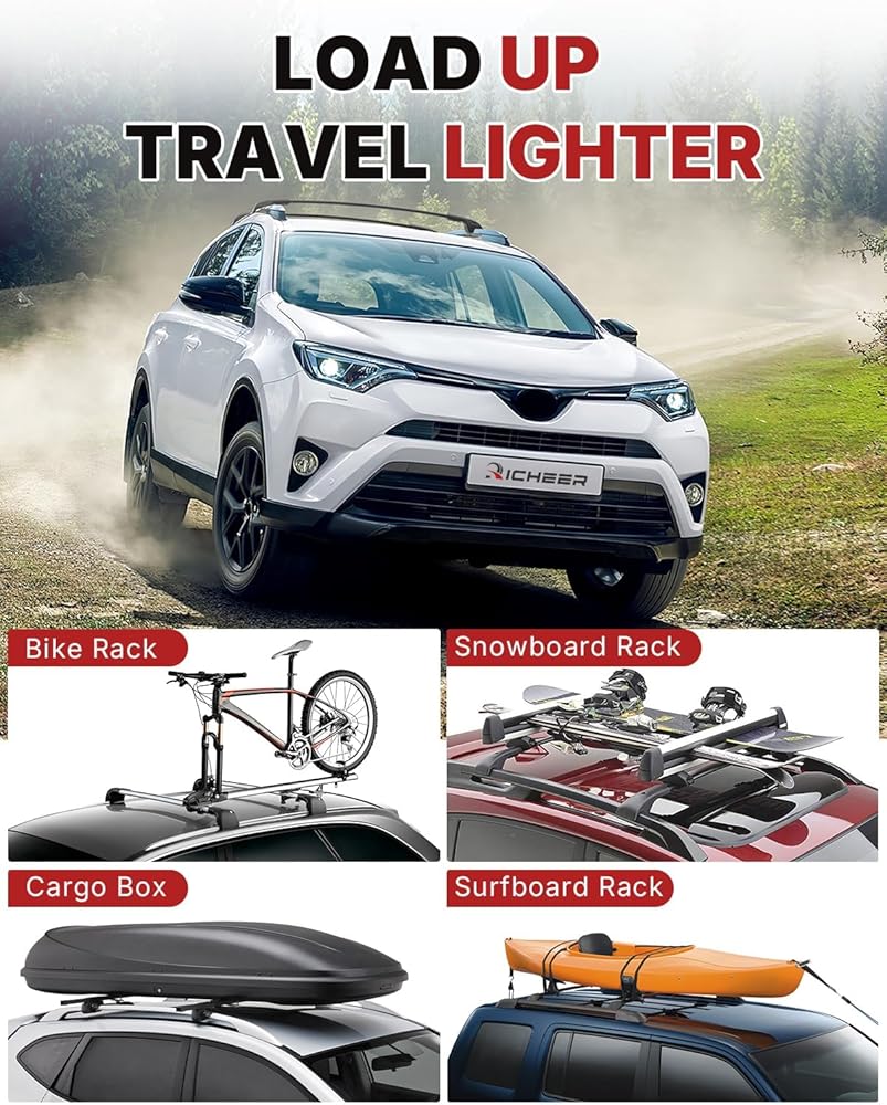 Richeer 300LBS Roof Rack Cross Bars for 2013-2018 RAV4 with Side Rails,Lockable Heavy Duty Aluminum Cross Bar with Anti-Theft Locks for Cargo Racks Rooftop Luggage Carrier Canoe Kayak Bicycle roof Bag