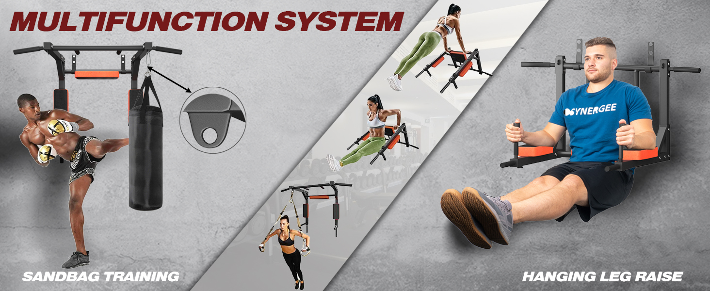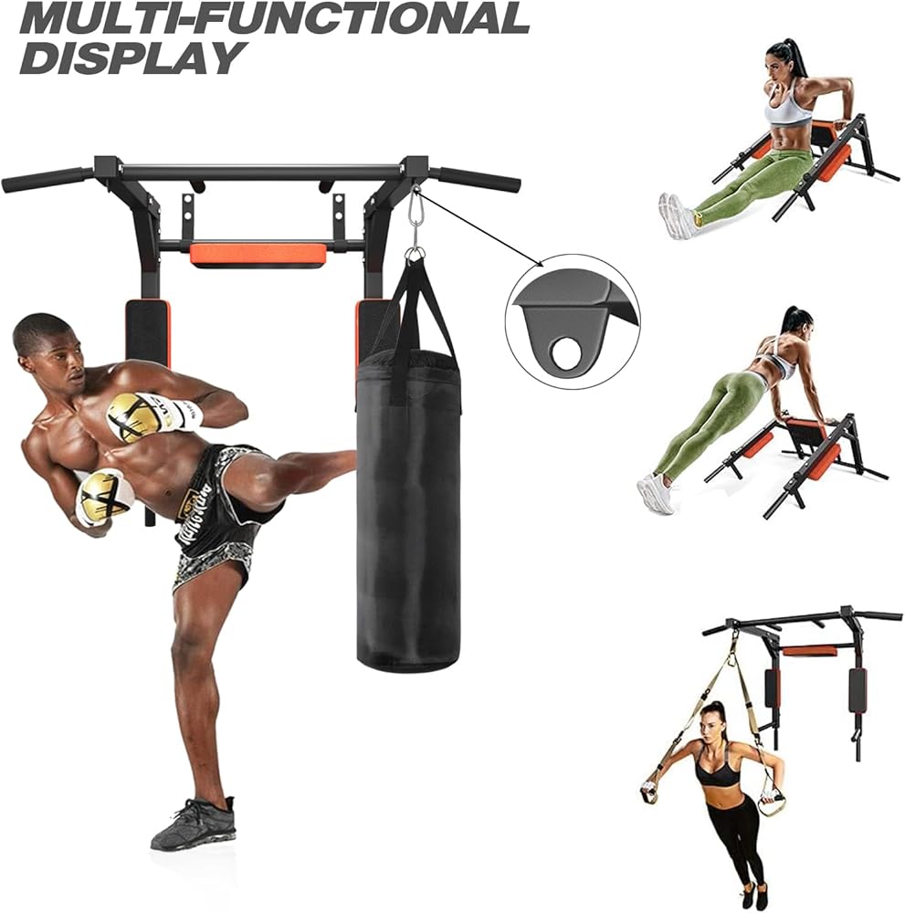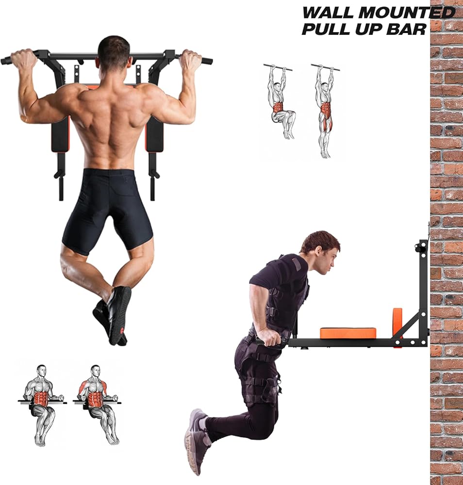【MULTIFUNCTIONAL FITNESS MACHINE】-Wall mount pull up and dip bar can support many kinds of sport exercise like pull ups, chin ups, dip station, leg raises and boxing. Pullup bars for home is perfect for exercising your backs, shoulder, chest, arms, triceps, biceps, lats, and the front of your abs.