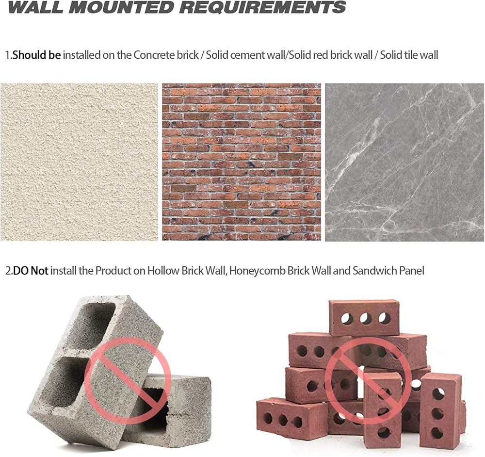 【WALL MOUNTED REQUIREMENTS】- Concrete wall or brick wall is suggested for mounting this pull up bar and dip station. DON'T install on drywall, plaster walls and cavity.Full instructions & all mounting hardware are included.