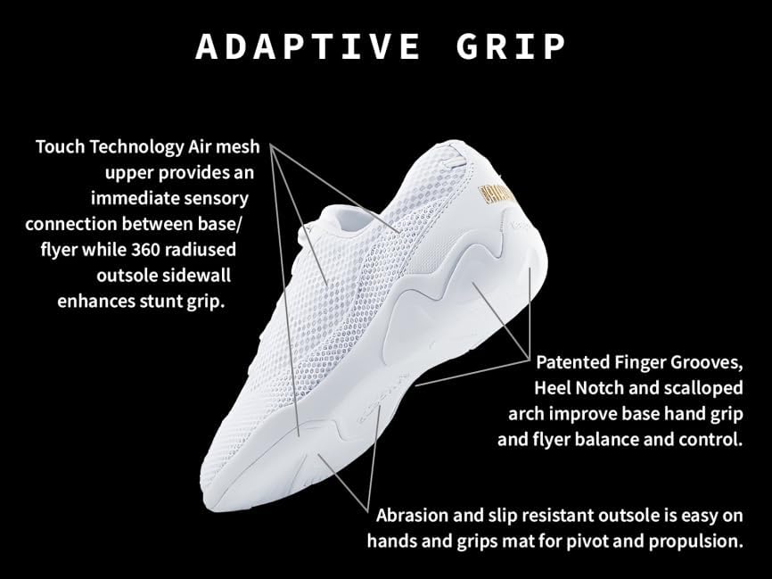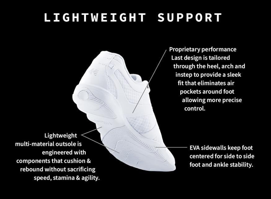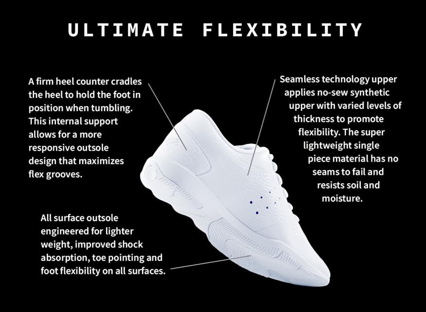 All surface outsole engineered for lighter weight, impoved shock absorption, toe pointing and flexibility on all surfaces