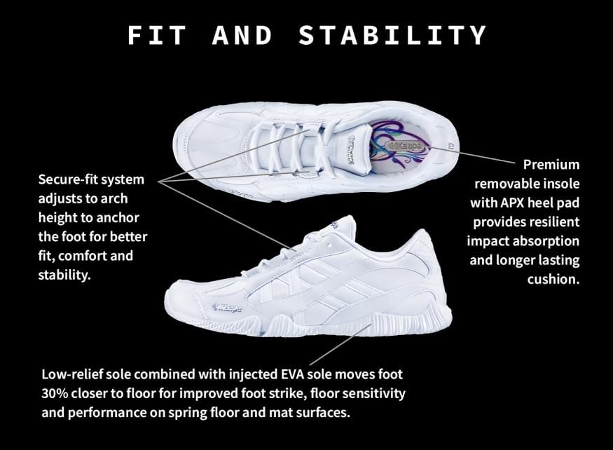 Secure fit system adjusts to arch height which anchors the foot for better fit, comfort and stability