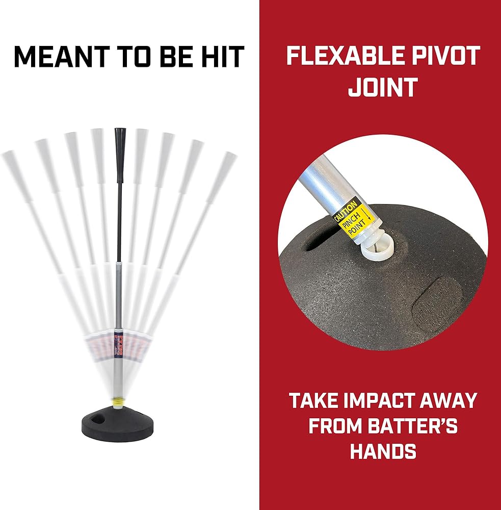 On Deck Sports PVTee Baseball/Softball Batting Tee with 10 lb Weighted Base and Flex Pivot, Adjustable Height: 27" - 47" - Silver/Black