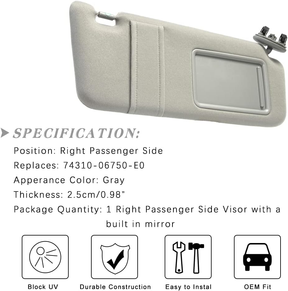 【Package Includes】1 * Driver Side Visor with a built-in mirror. Fit Vehicles without Sunroof (No Lights In Visor), please confirm the applicable model before purchase, so as not to cause you.