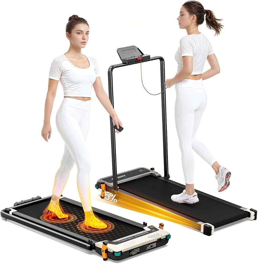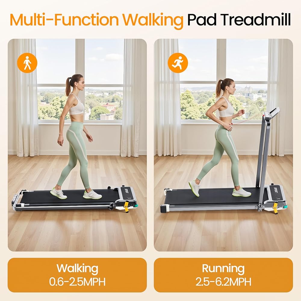 Under Desk Treadmill: Walking pad treadmill under desk with a 2.25 hp powerful motor can reach 0.6-3.8 mph. Maximum weight capacity of 260 pounds and a running area size of 35.5 "x 16.54". Perfect for walking or jogging, thus achieving better exercise goals.