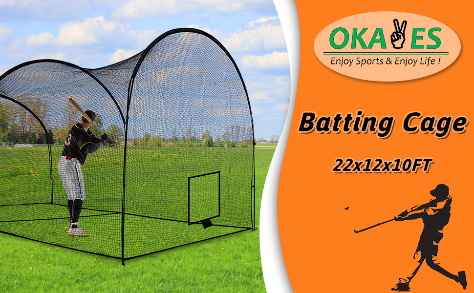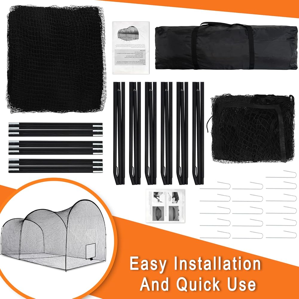 🔶BATTING CAGE INCLUDED -- A set of baseball batting cage includes: Cage Net x2, Fiberglass Poles x3, Iron Poles x6, Ground Nails x16, Carry Bag x1, Instruction Manual x1. This perfect size 22x12x10FT batting cage net strike cage is suitable for baseball softball practicing at any level and anywhere.