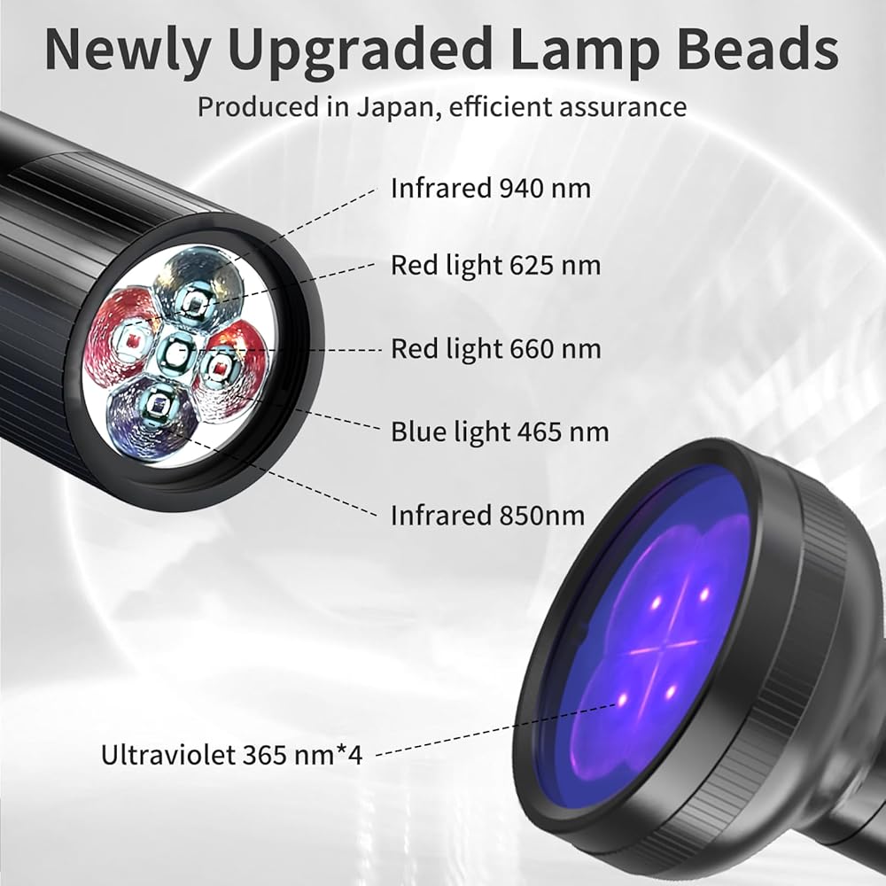EFFECTIVE LIGHT THERAPY: Upgrade 4 types of wavelength, their respectively is 625&660nm red light, 850&940nm infrared light, 460nm blue light and 360nm purple light. It's absorbed by the body,to promote the recovery of the body and wound healing, help with mouth sore relief and canker sores.