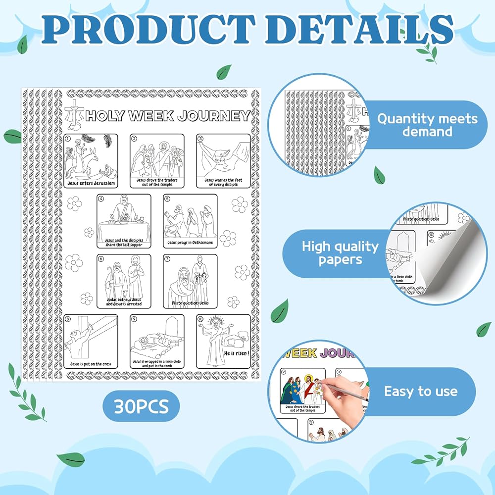 Zoyeven 30pcs Holy Week Journey Poster for Easter Crafts for Kids Color Your Own Sunday Crafts Palm Sunday Religious Poster Holy Week Classroom Activities Supply
