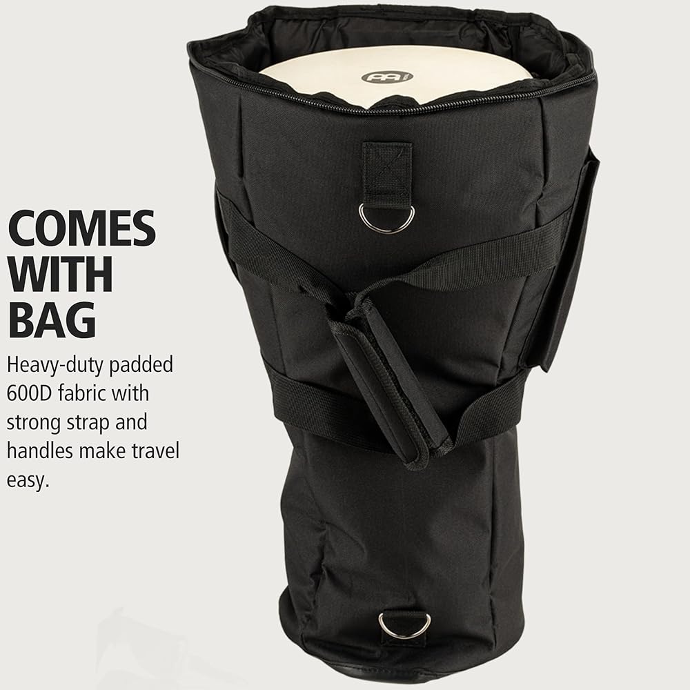 INCLUDES BAG: comes with our Professional Djembe Bag to make travel easy; it's made with super-rugged 600D polyester that has padded walls, reinforced strap and handles, plus exterior storage for accessories