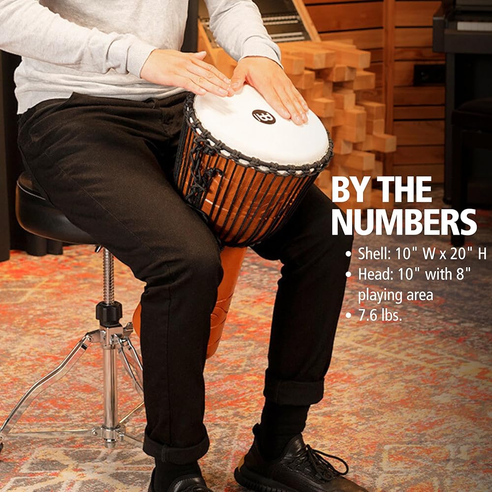 WHY IT MATTERS: a lot of fun musical adventures don't require time-consuming practice on a drum set; with the Meinl African Style Djembe, you can play in drum circles, acoustic shows with bands, jam with friends and family, or teach students about rhythm