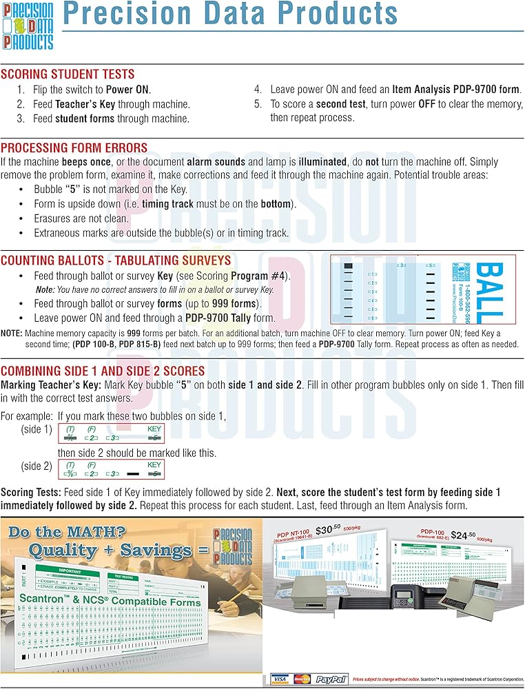 PDP 50 Compatible testing form Scantest factory sealed packs. Perfect for College and University Students