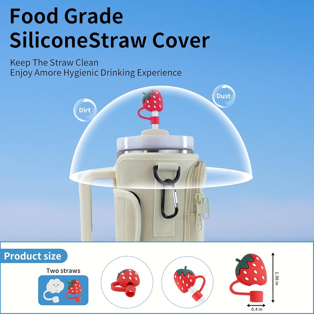 【2pcs Silicone Straw Cover】:Coming with Stanley cup accessories straw (including Cloud Shape Straw Covers Cap and shapes of strawberry) Size caliber is 8-10mm, diameter is 0.4 inches with Perfectly compatible with mainstream brands of water bottles such as Stanley 30oz and 40oz straw diameters, its firm fit prevents accidental dislodgement, can keep the straw clean, no dirt BPA-free, safe and odorless.