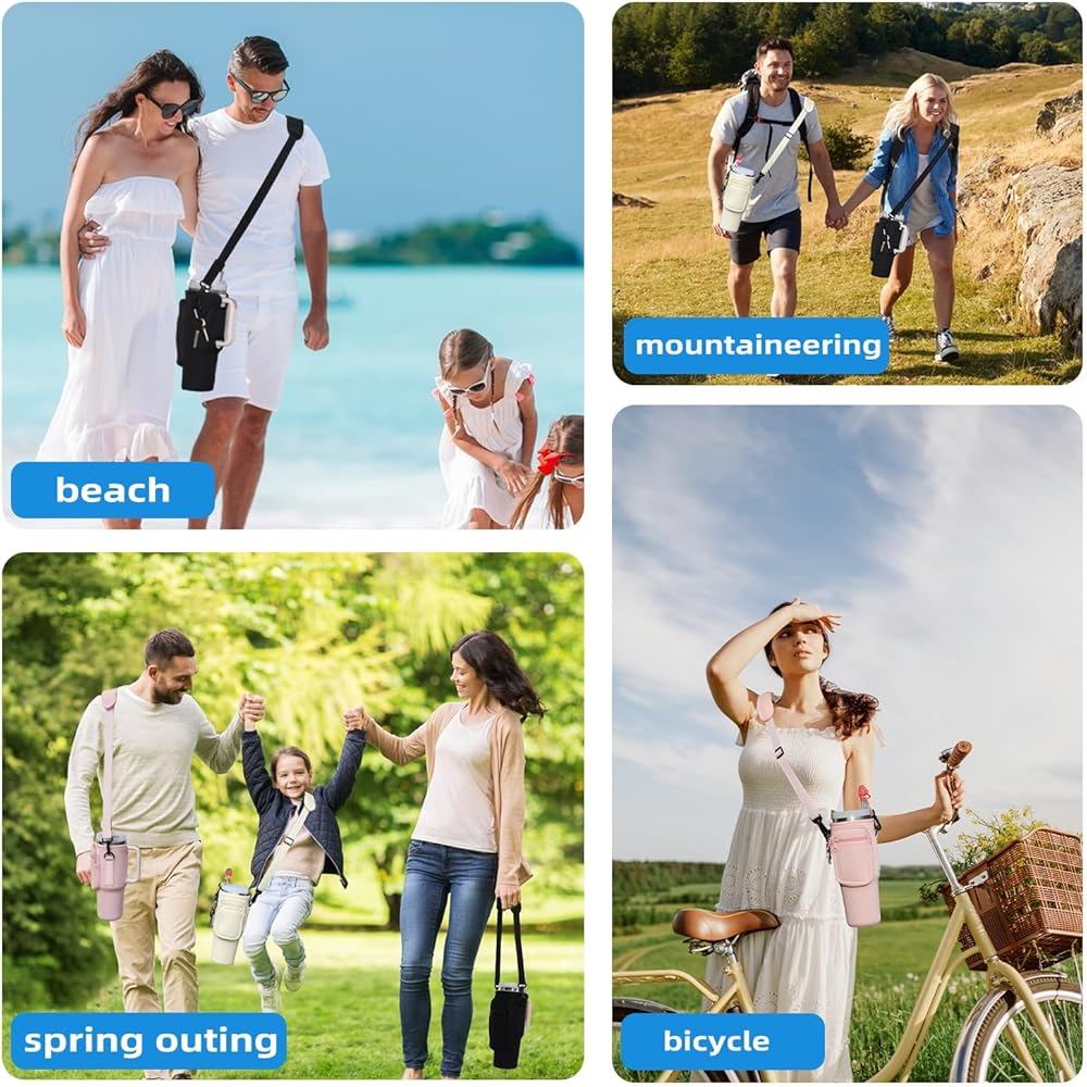 【Multi-functional Water Bottle Bag】:Perfect for this Stanley 40oz Tumbler with Handle is designed for Stanley mugs. Water Bottle Holder Pouch crossbody bagsEnjoy convenience with adjustable, detachable shoulder strap (28-51 inches) for various body sizes. Use as shoulder or handheld bag. Doubles as gym Water Bottle Carrier Bag with Phone Pocket, suitable for children, teens, and adults.