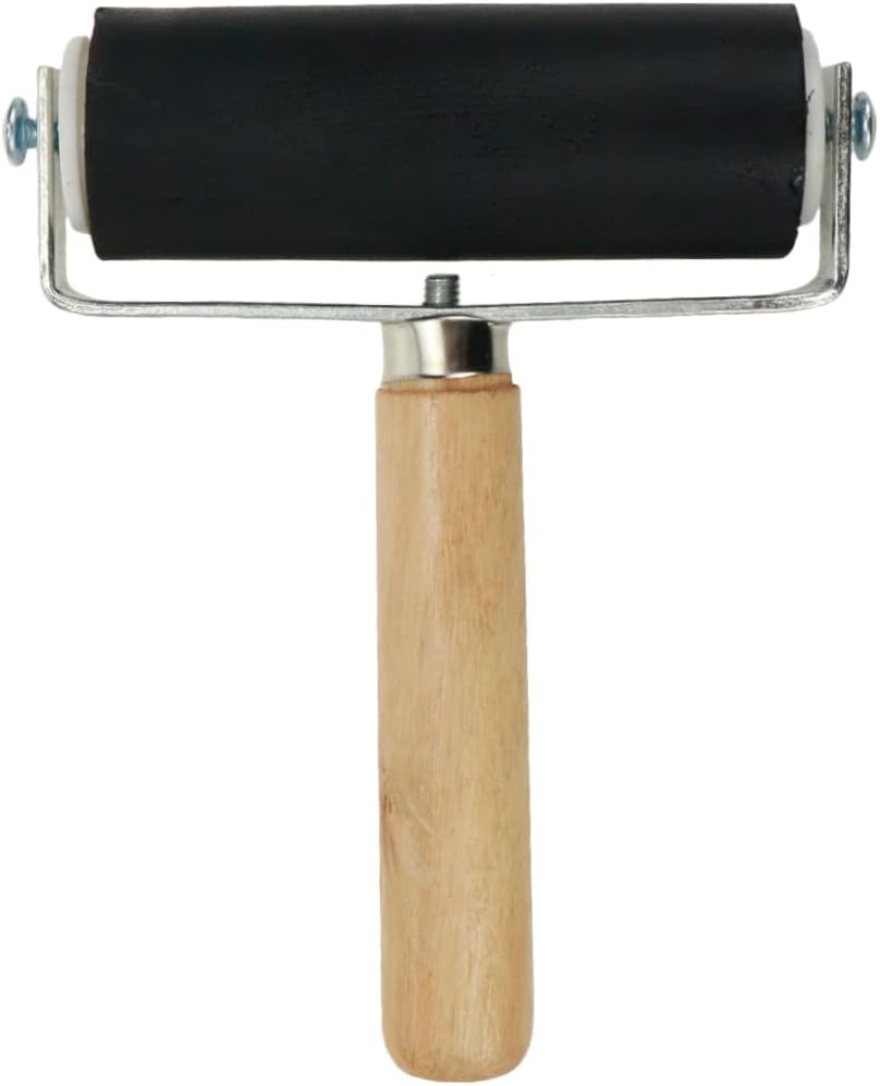 Risbay 1Pc 4Inch Black Rubber Roller with Wooden Handle for Printing,Gluing