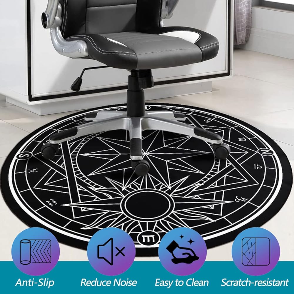 NON SLIP&EASY TO MOVE--This round gaming chair mat is manufactured with TPR backing, both the backing and heavy weight make it non slip on DRY, CLEAN, SMOOTH floors (eg: vinyl, concrete, hardwood). Besides, the smooth surface allows your rolling chair move easily without skidding. And the size provides enough space for you to move when performing daily tasks or gaming.