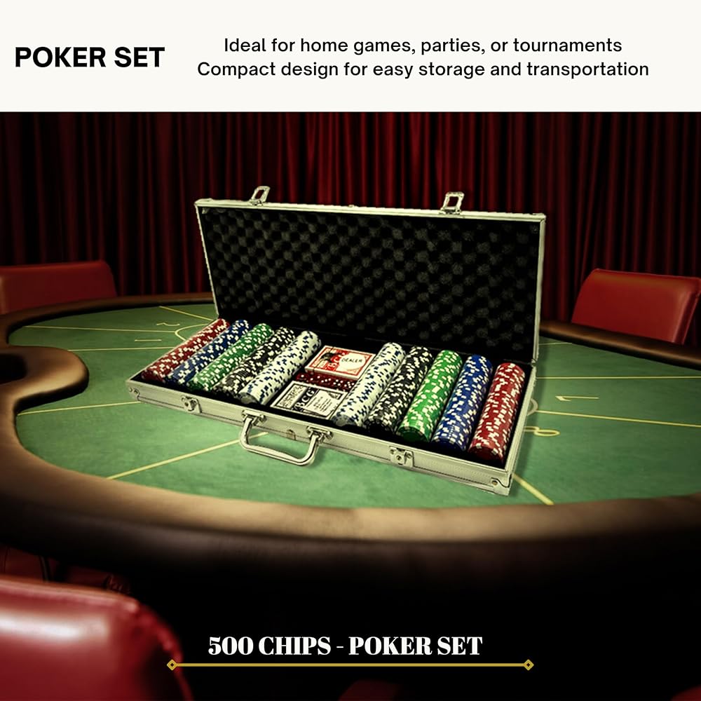 - Premium Casino Style Chips: Enjoy 500 high-quality chips designed for durability and satisfying weight.