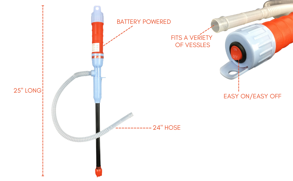 Not just a hand pump, but an easy to use battery powered gas pump transfer that has a long, flexible, liquid transfer pump hose that allows you to siphon pump for water, syphon pump for gas, and siphon just about any liquids easily and mess free. Portable pump water with no more messy spills or lugging heavy gas siphon pump equipment. This siphon hose for gasoline optimizes the job beautifully.