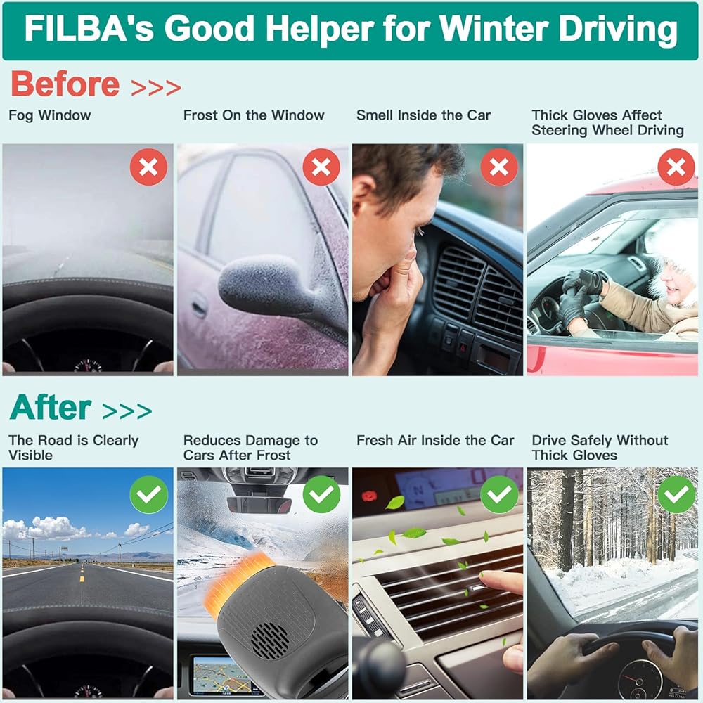 [High Power Fast Heating] Upgraded 12V car heater with a power of 120W, more suitable for car use, increasing the temperature inside the car, defogging and defrosting, and increasing driving safety. It is a good assistant in the car in winter.
