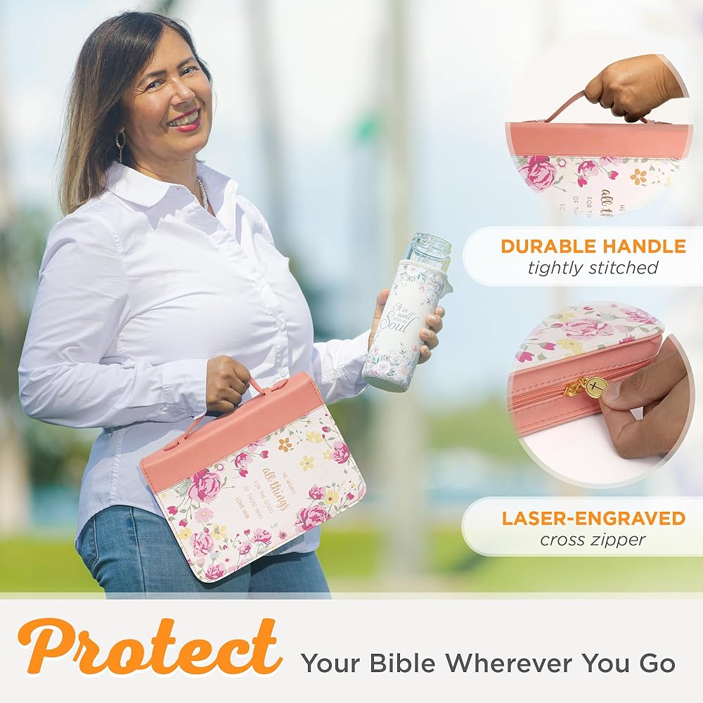 Durable: Protect your Bible from life's mishaps with this peach fashion Bible cover for men and women made from sturdy faux leather material that is easy to clean and will withstand daily wear.