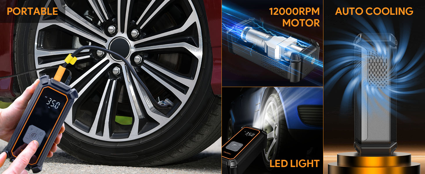 Fast & Unbeatable Performance: Elevate tire pressure from 28 to 35 PSI in just 40 seconds. Achieve full inflation in 4 minutes flat. Engineered for speed and optimized for cars, our tire inflator is tested on a standard 195/65/R15 tire for reliable performance.