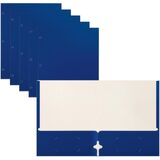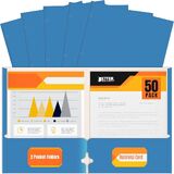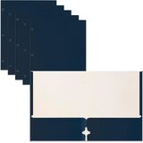 50-PACK: Navy Blue matte finish paper folders with 4" pockets. Easily holds 100 sheets (50/pocket) of letter size (8.5" x 11") paper/documents. But can even handle more.