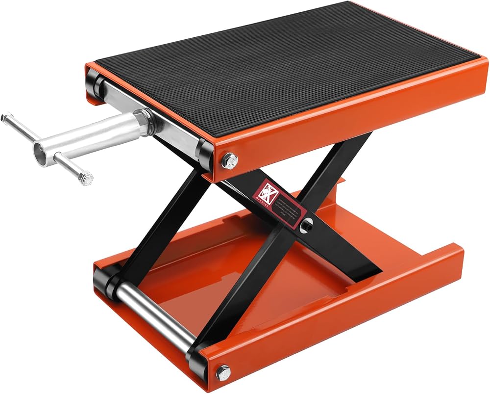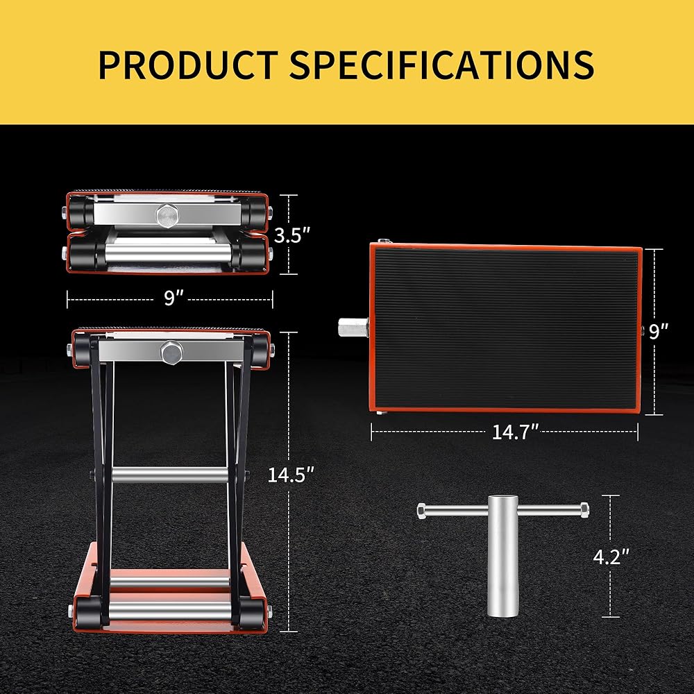 Durable and Lasting: This motorcycle lift jack features heavy-duty, sturdy steel construction with a powder-coated finish. The coating is resistant to oil and rust and is easier to clean.