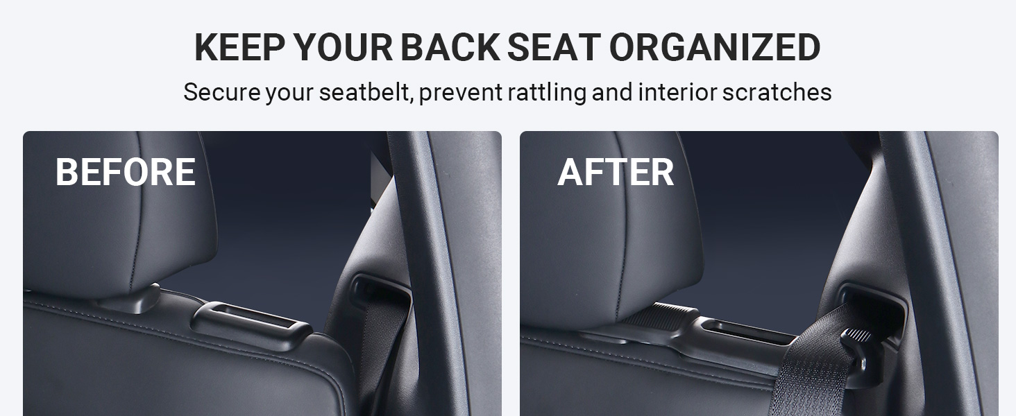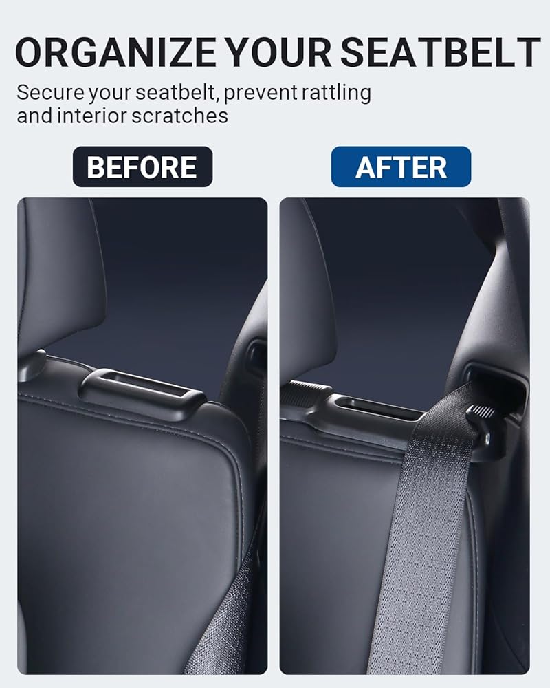 Organized and Rattle-Free Experience: Keep the seatbelt easily accessible. Prevent seat belts from falling behind the seat. This holder raises the seatbelts from resting on the seat, securing them in place and preventing seat discoloration and rattling noises. It's especially suitable for the Model Y with white seats, minimizing the marks left by the seatbelt, and keeping them clean and tidy.