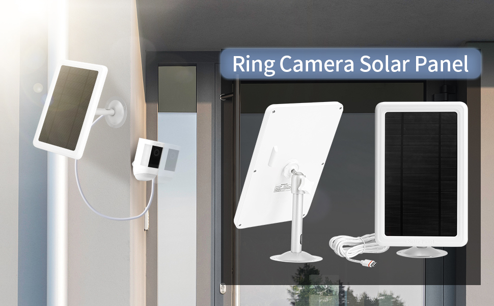 【Easy to Install】 Just Face This Ring Solar Panel To Direct Sunlight, Then Connect The Power Cord To Your Ring Stick Up Cam Battery /ring Spotlight Cam Battery'S Dc3.5mm Charging Port. The Aluminum Alloy Bracket Strong And Stable.