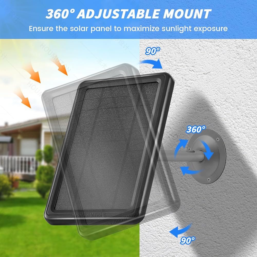 【Package Includes】1x ring Solar Panel, 1 X 4m(13.1ft) Cable. 1 X 360-Degree Mounting Bracket, 1x 4 Screw Pack,1 Packs Of 6mmx20 Pe Steel Nail Line Cards. (Camera Not Included)