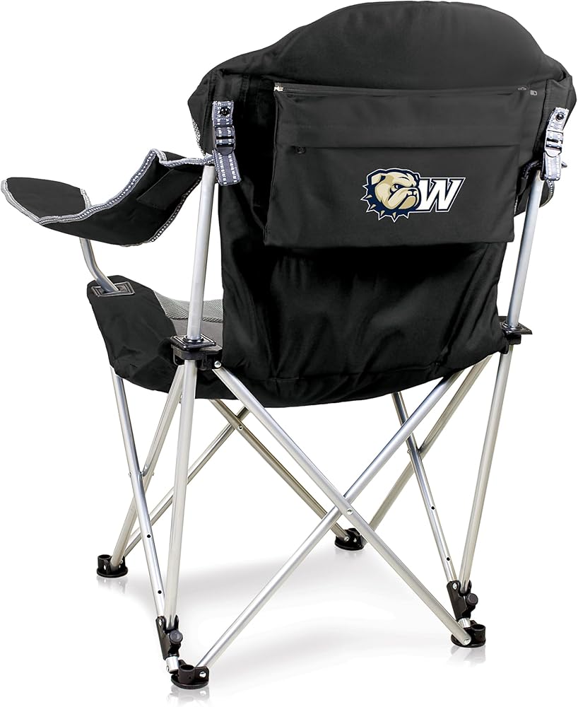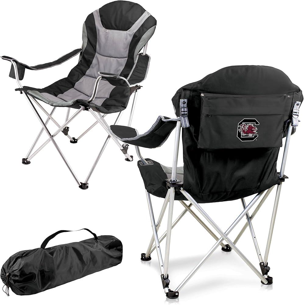 NCAA portable reclining camp chair with team logo, for camping, tailgating, or sporting events