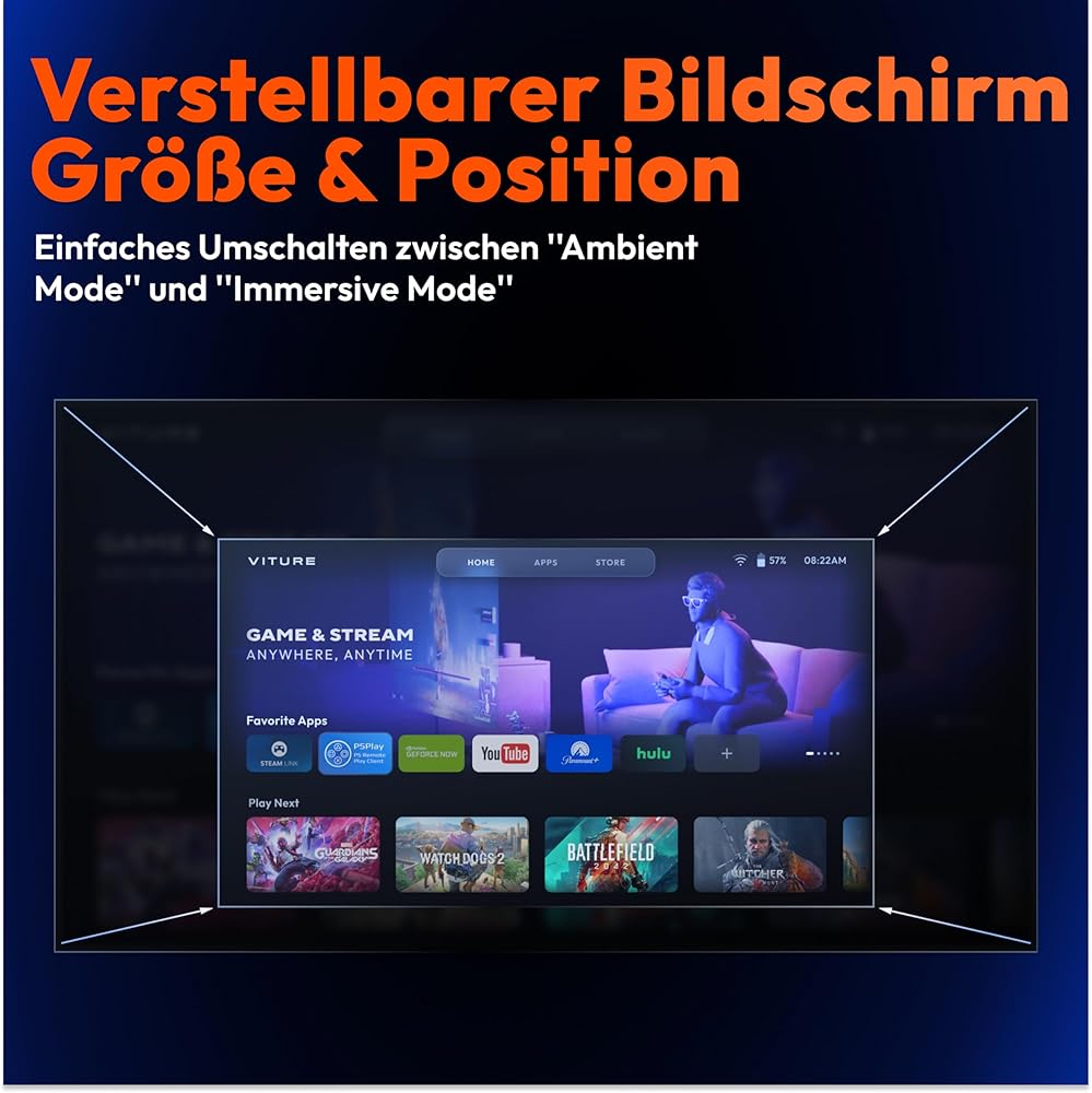 【Customize The Screen Size As You Wish】: Customize VITURE One's screen size and move your screen with the Neckband — you can even minimize the virtual display to the corner so you can interact with the world around you without logging out or missing a moment of your favorite show — we call it Ambient Mode.