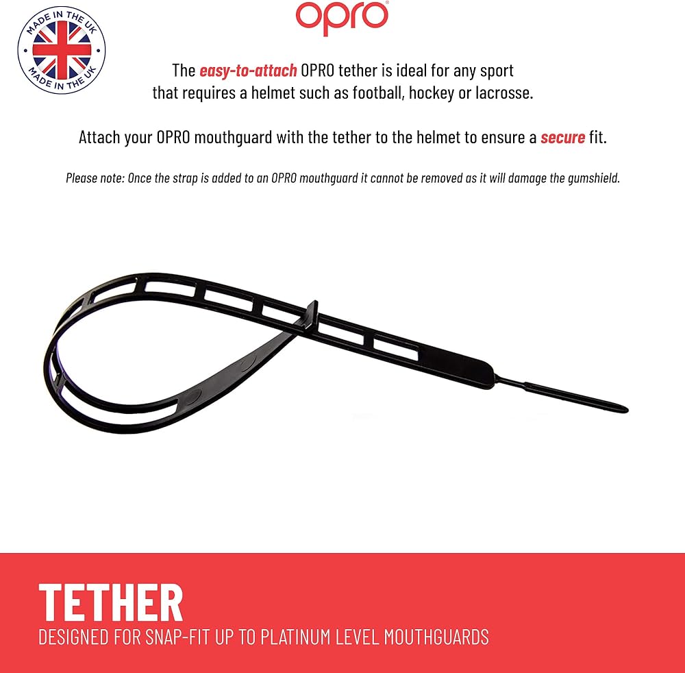 The easy-to-attach OPRO tether is ideal for any sport that requires a helmet such as football, hockey, or lacrosse. Attach your OPRO mouthguard with the tether to the helmet to ensure a secure fit. Specially designed to fit with our OPRO mouthguards from Snap-Fit up to Platinum.