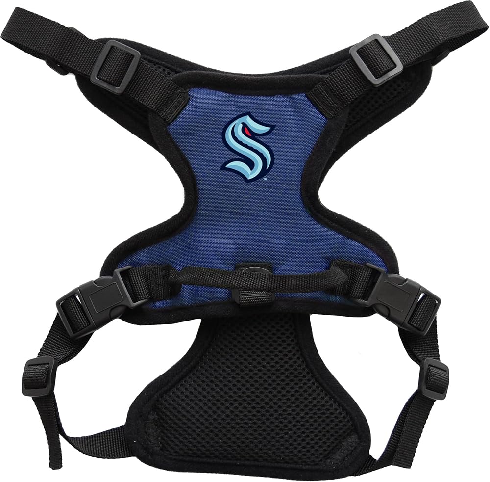 Make walks a breeze with Littlearth's Front Clip Pet Harness! Two adjustable front clips make it easy to put on your pet, and the added back handle helps keep your pet extra secure. A team logo and woven league patch accessorize the harness and show off your pets fan status.