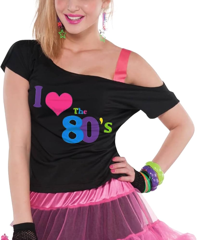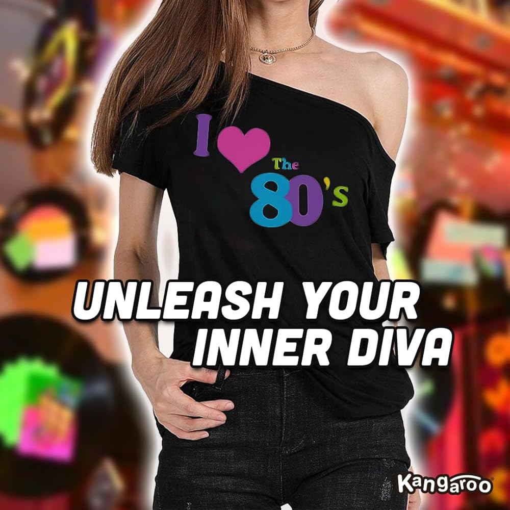 80s Costume Shirt; 80s Off Shoulder Shirt; Black 80s Shirt; Girls 80s Shirt; Adult 80s Shirt; 80s Women Shirt; Eighties T Shirt; Eighties Shirt; 80s Costume Adult