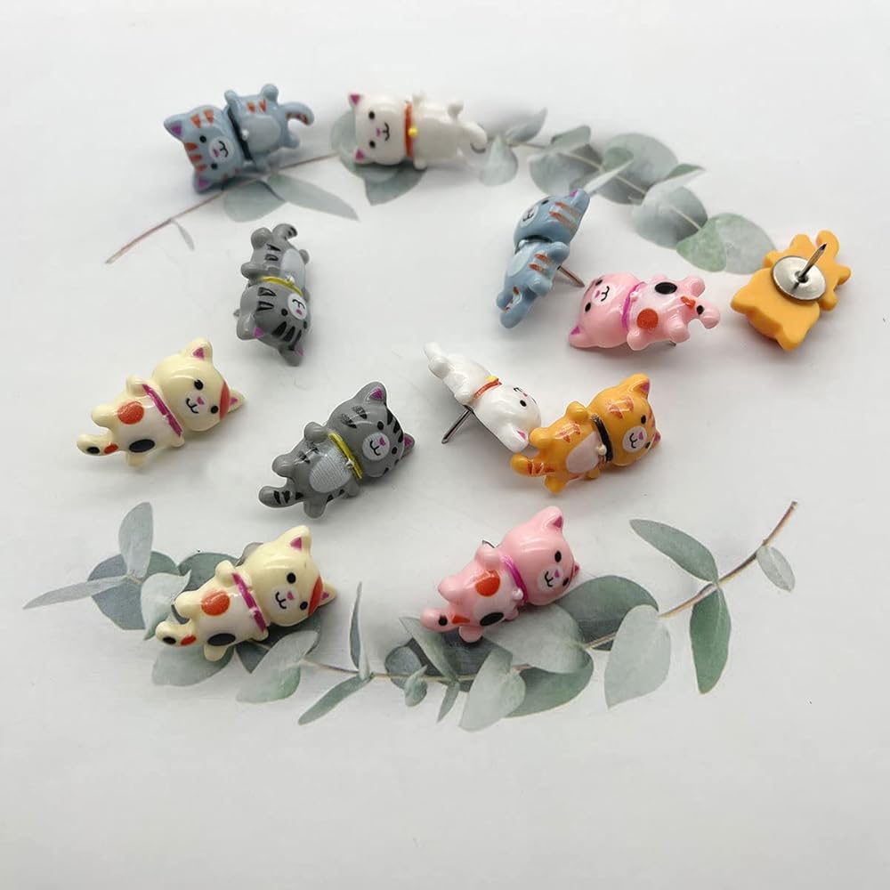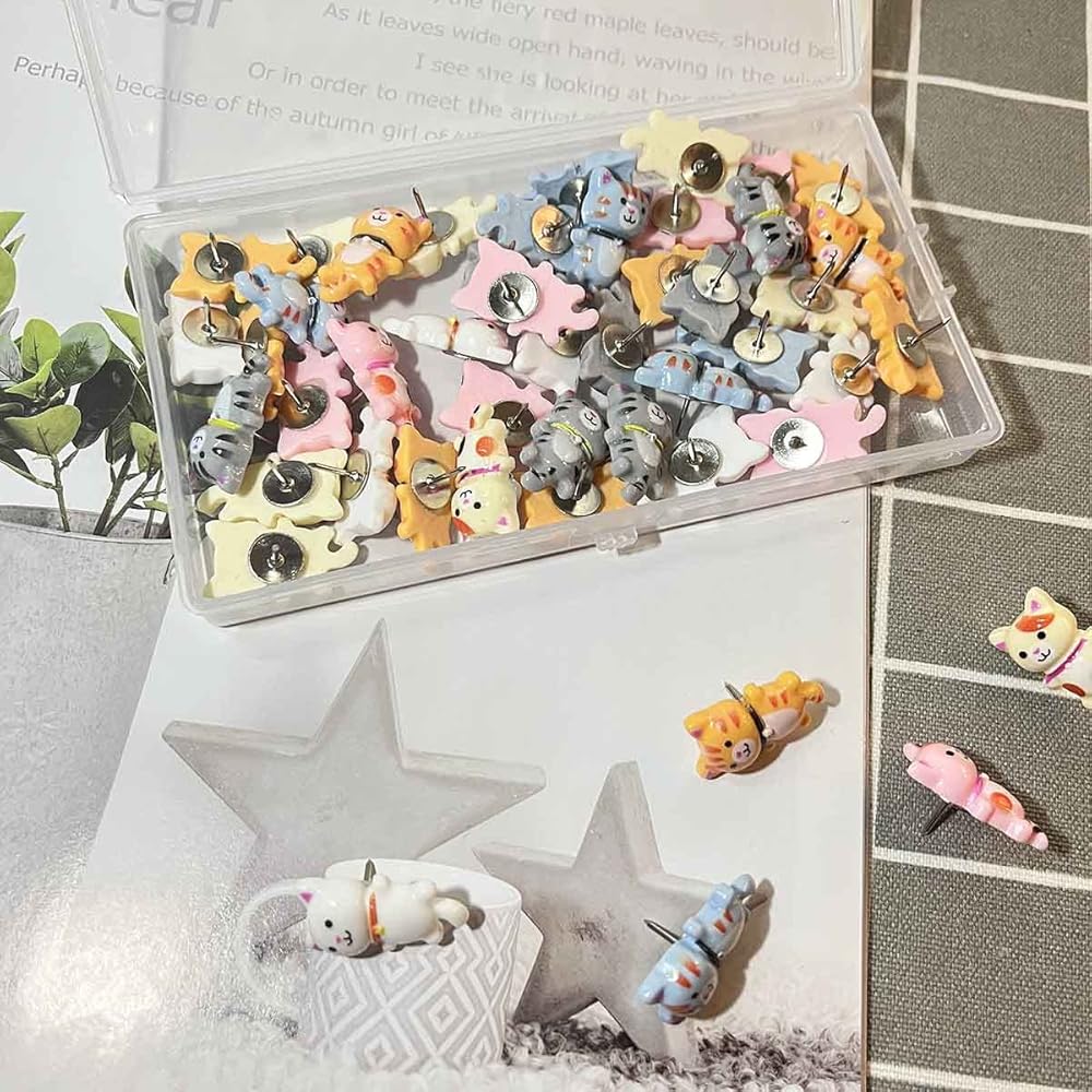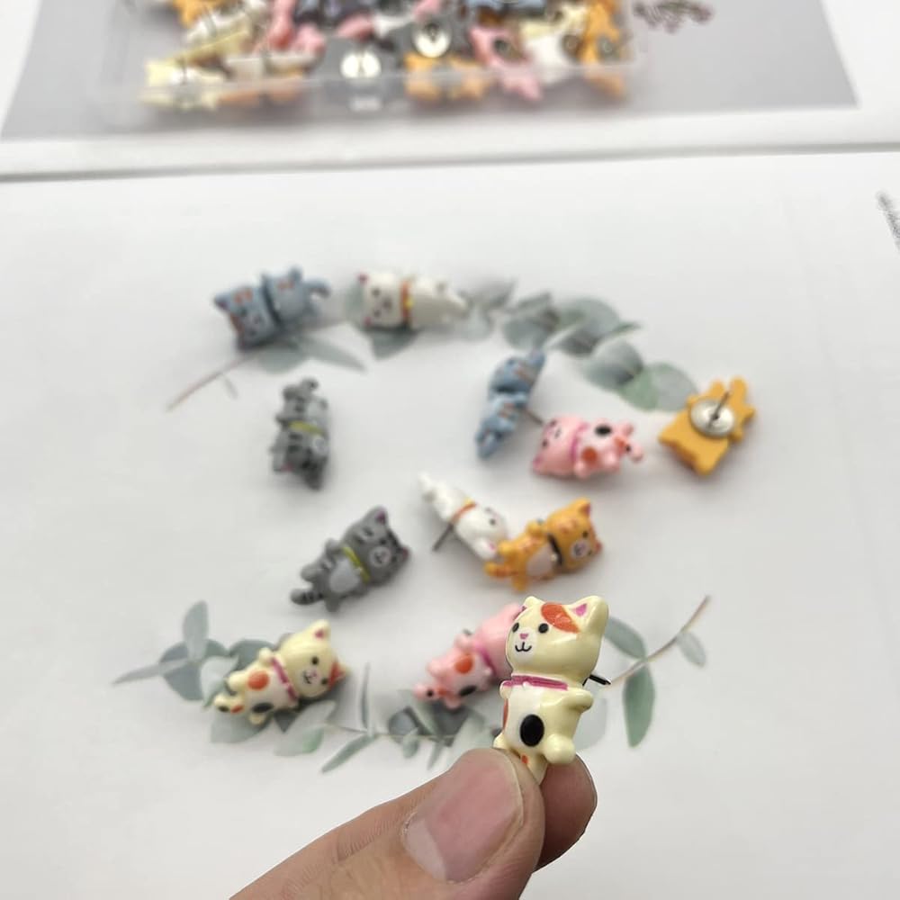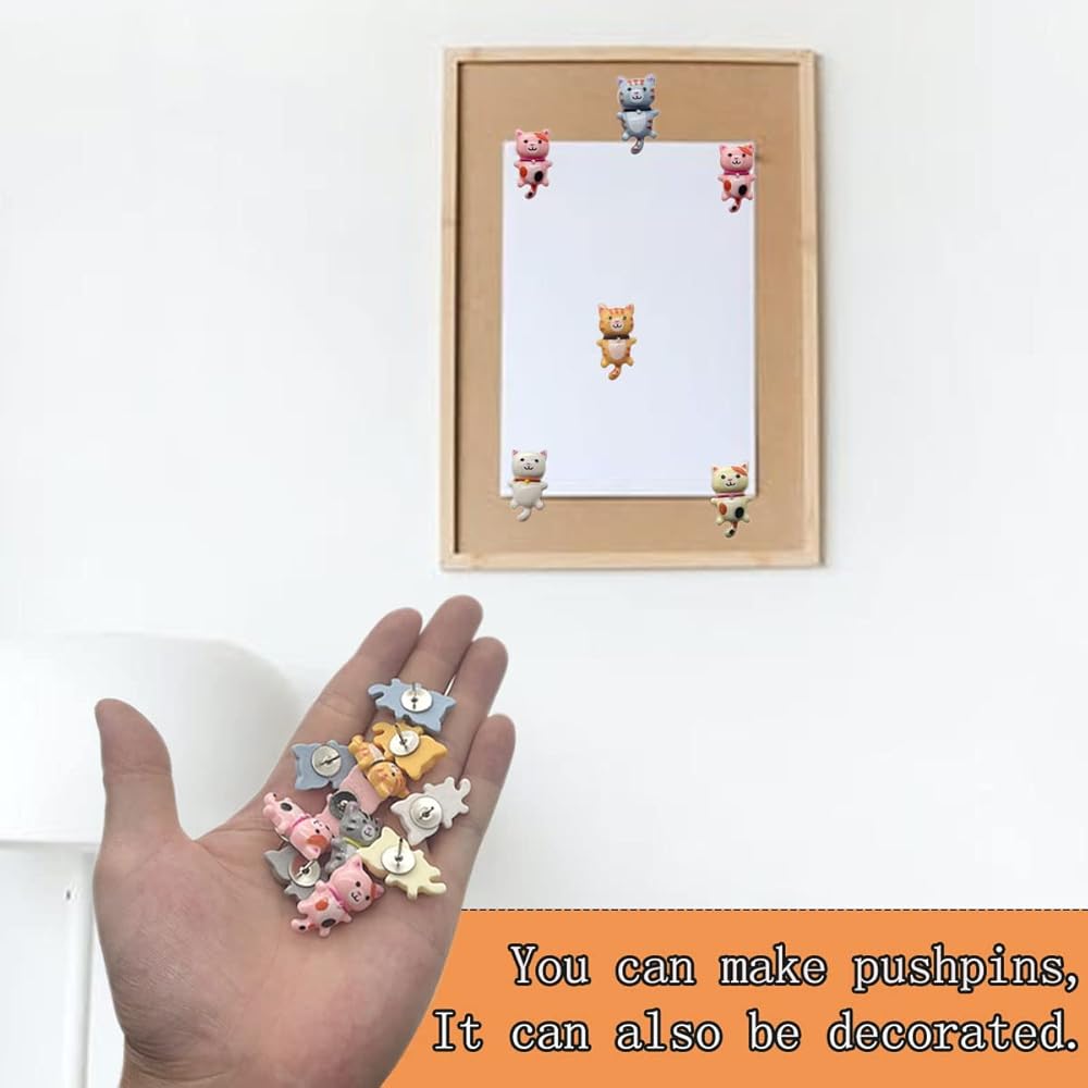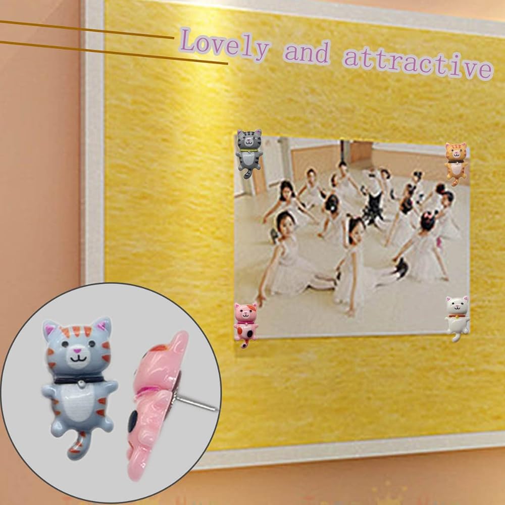 The cute cat pin pushpins are suitable for office, school, home, applied on publicity column, cork board, notice boards, photo wall, etc. Decorating pictures and photos, mark scenic spots and travel routes, fix maps and notes