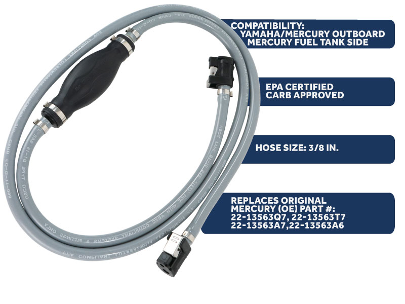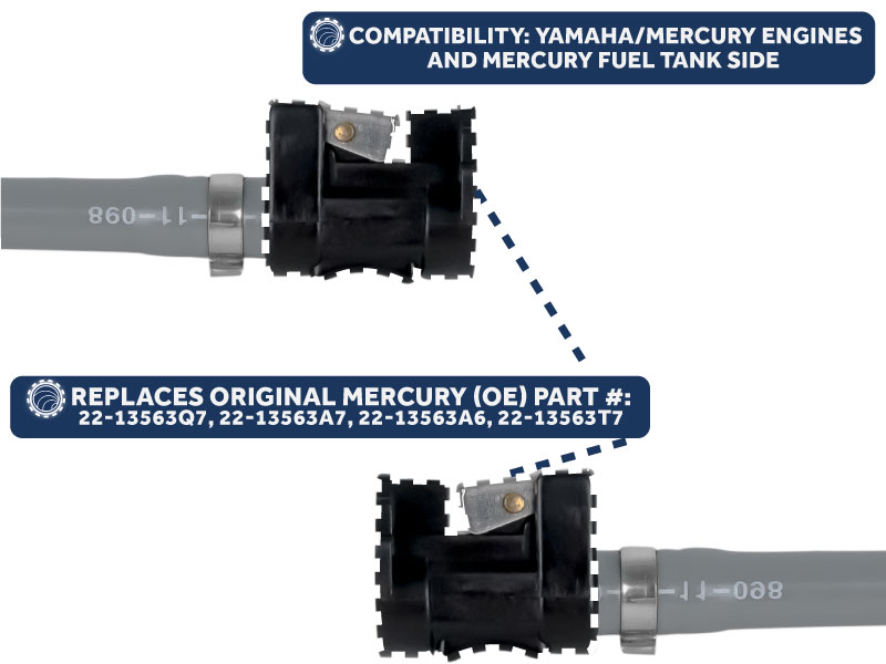 COMPATIBILITY: Outboard Motor Fuel Line for Yamaha/Mercury Engines and Mercury Fuel Tank Side - Replaces Original Mercury (OE) Part #: 22-13563Q7, 22-13563A7, 22-13563A6, 22-13563T7