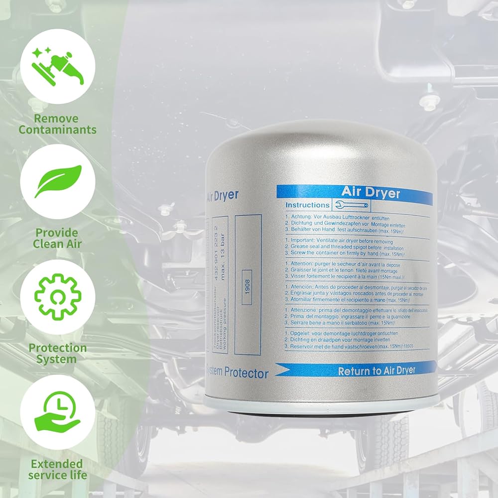 🚛EASY TO USE: The air dryer does not need to be removed from the car, it is very easy to replace the cartridge and convenient to use. Please compare the compatibility before buying, whether it is suitable for your product