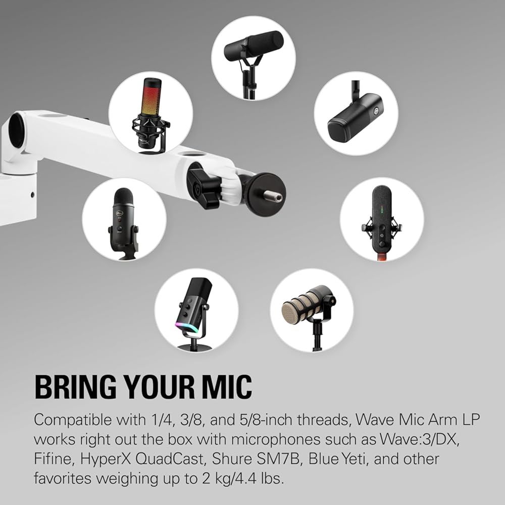Elgato Wave Mic Arm LP White - Premium Low Profile Microphone Arm with Cable Management, Desk Clamp, Versatile Mounting and Fully Adjustable, perfect for Podcast, Streaming, Gaming, Home Office